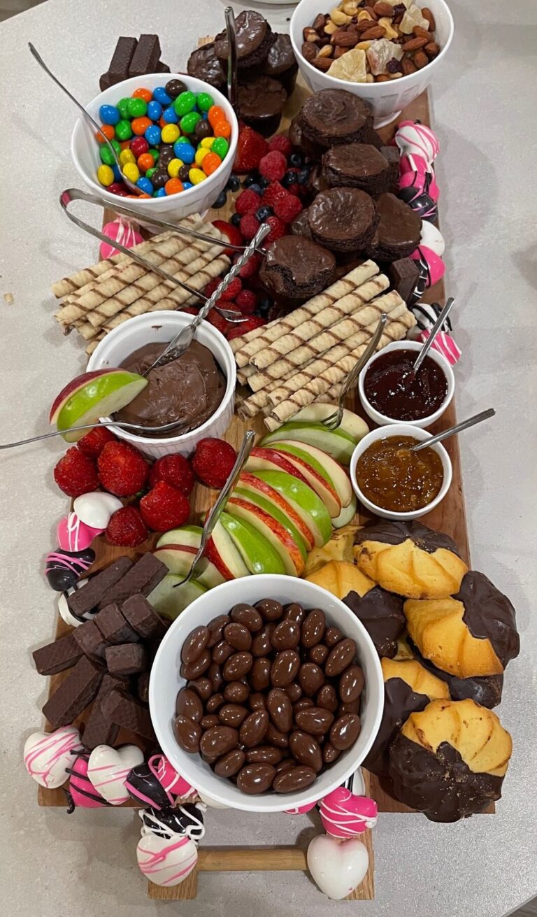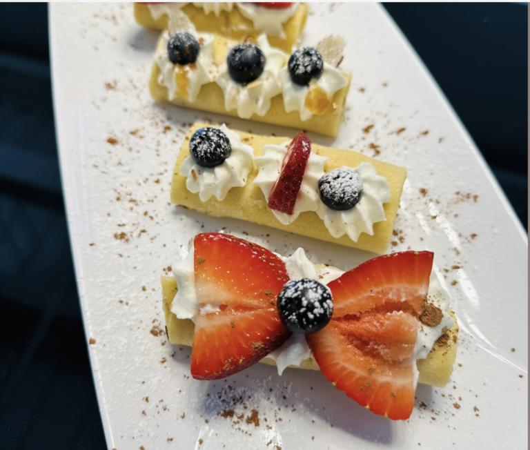 Guests can fill their crêpes or prepare a tartine bar with various spreads and toppings. It’s not a hotel setup where someone is continuously making crepes. Make your crepes ahead of time warm before setting out, and allow the fun to begin! See our one-pan oven crepe recipe here: https://boncook.com/recipes/oven-sheet-pan-crepes/